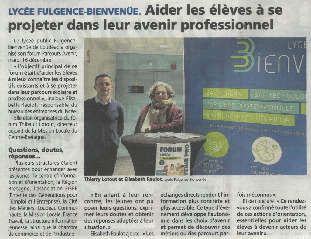 Lycée Fulgence-Bienvenüe. Aider les élèves à se projeter dans leur avenir professionnel. Le Courrier indépendant, 25 décembre 2025.